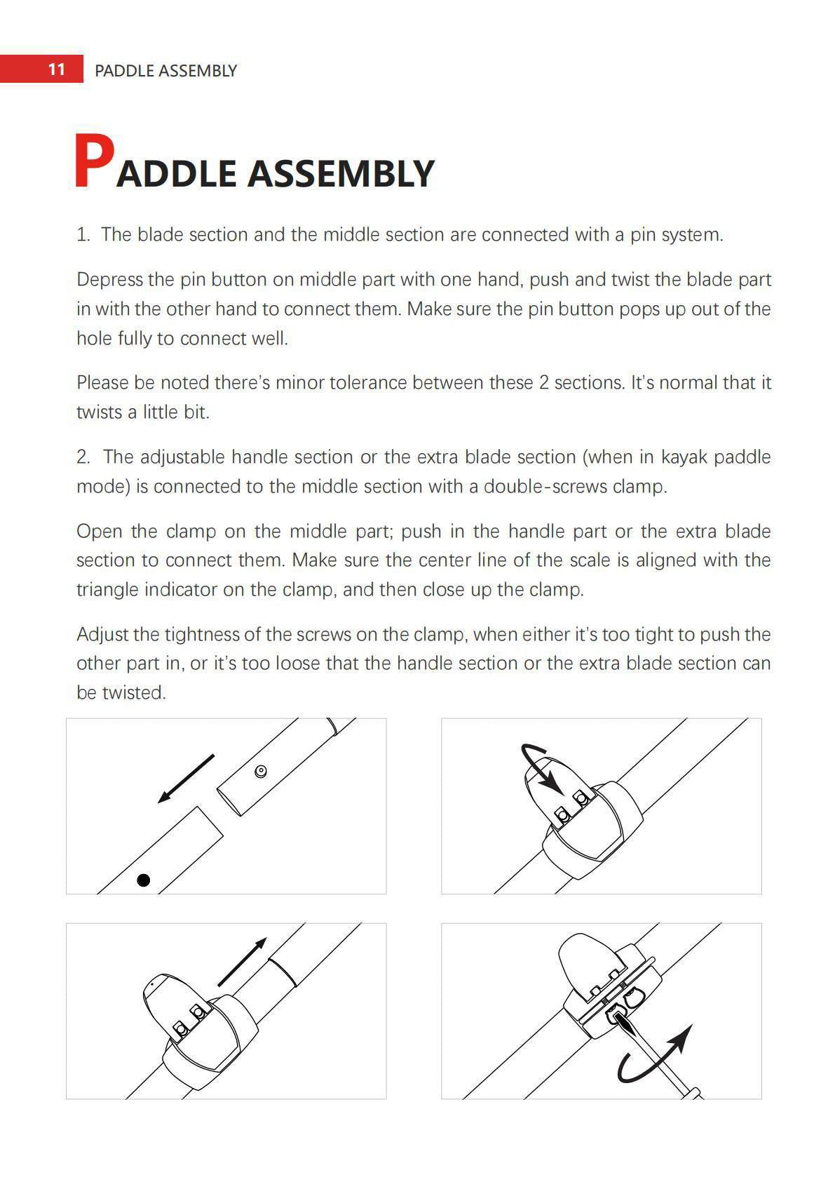 I received my Abahub paddle ordered through Amazon a little while ago. When I opened the Amazon shipment box there were only two pieces in the box. Both had paddles on each end. One has row of 5 holes vertically down the metal tubing starting an inch and a half to two inches from the non blade end. The other paddle section has a horizontal row of three holes extending less than half way around the tube. There was nothing else in the box. One of the paddle ends was covered with a clear piece of plastic. The other piece was not. There was an empty plastic bag in the box. The shipping box (Amazon) had a square hole in the box about 2 inches by 2 inches about half way down.