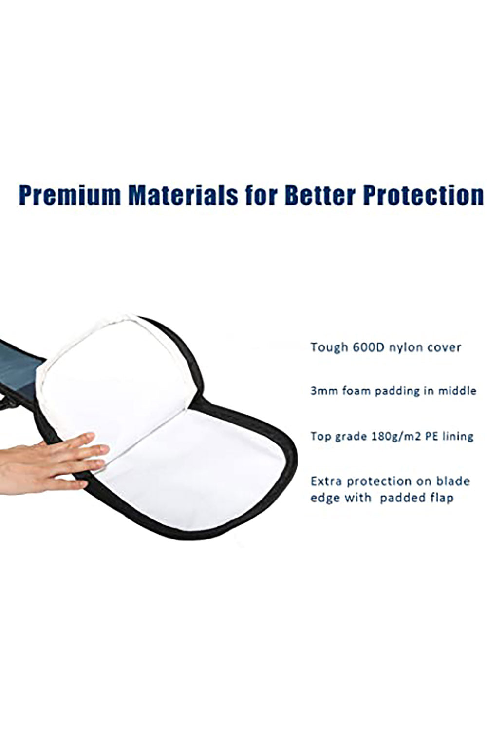- Reinforced Protection: 3mm foam padding in the middle provides protection for shock and impact; the top grade heat-reflective PE lining protects the paddle from extra heat; there is even extra protection on the blade edge with the padded flap.