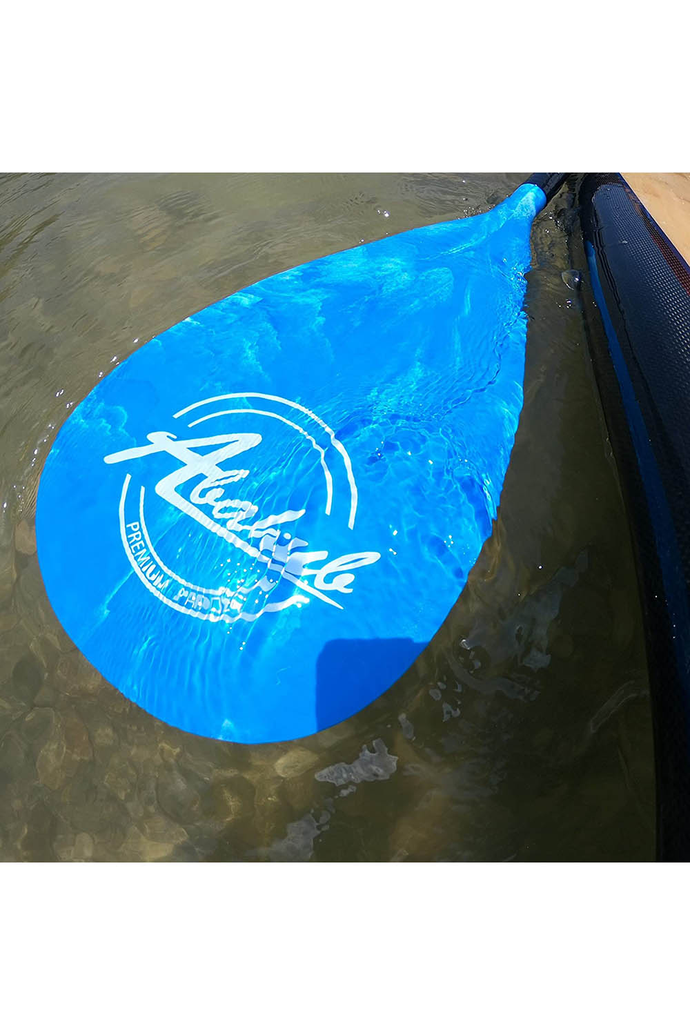 - FIBRE DE VERRE+POLYPROPYLÈNE BLANC-BLEU LAME : Le blanc au hasard& La conception solide bleue rend cette pagaie de haute qualité encore unique. Cela apportera plus de plaisir lorsque vous pagayez avec cette pagaie « nuage blanc 3D et vague bleue ». Il pèse environ 28,5 oz (810 g) et flotte dans toutes les eaux. La lame double concave de 91 pouces carrés ajoute de la puissance et de la stabilité à la course tout en réduisant le flottement de la pagaie.