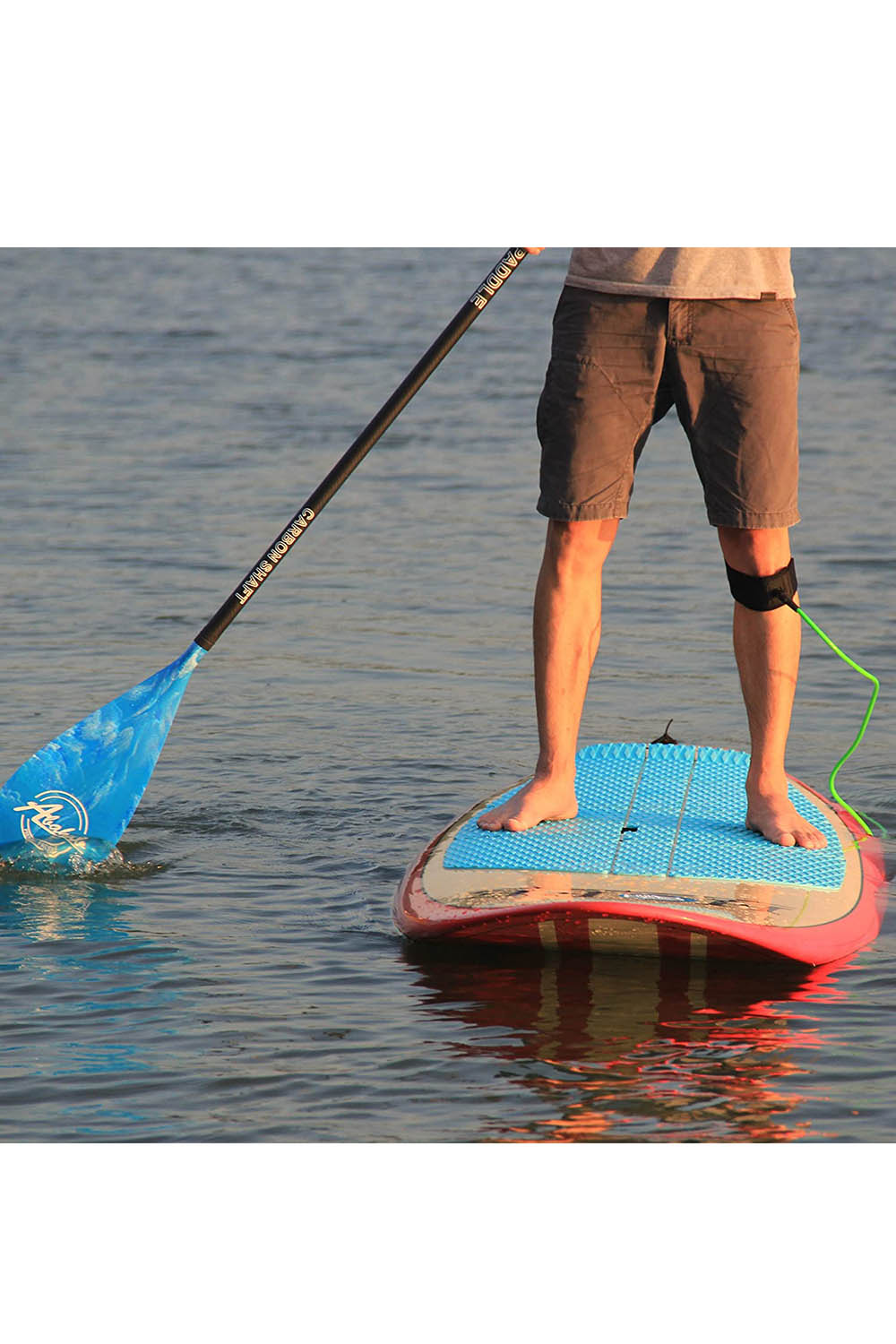 - CARBON SHAFT : Le manche en composite de carbone contribue à la légèreté de l'ensemble de la pagaie. Il est rigide mais avec une certaine flexibilité nécessaire pour maintenir de meilleures performances et protéger l'arbre de la rupture sous une course extrêmement puissante. La poignée ergonomique et à motifs en PP augmente la traction et le confort de la main.
