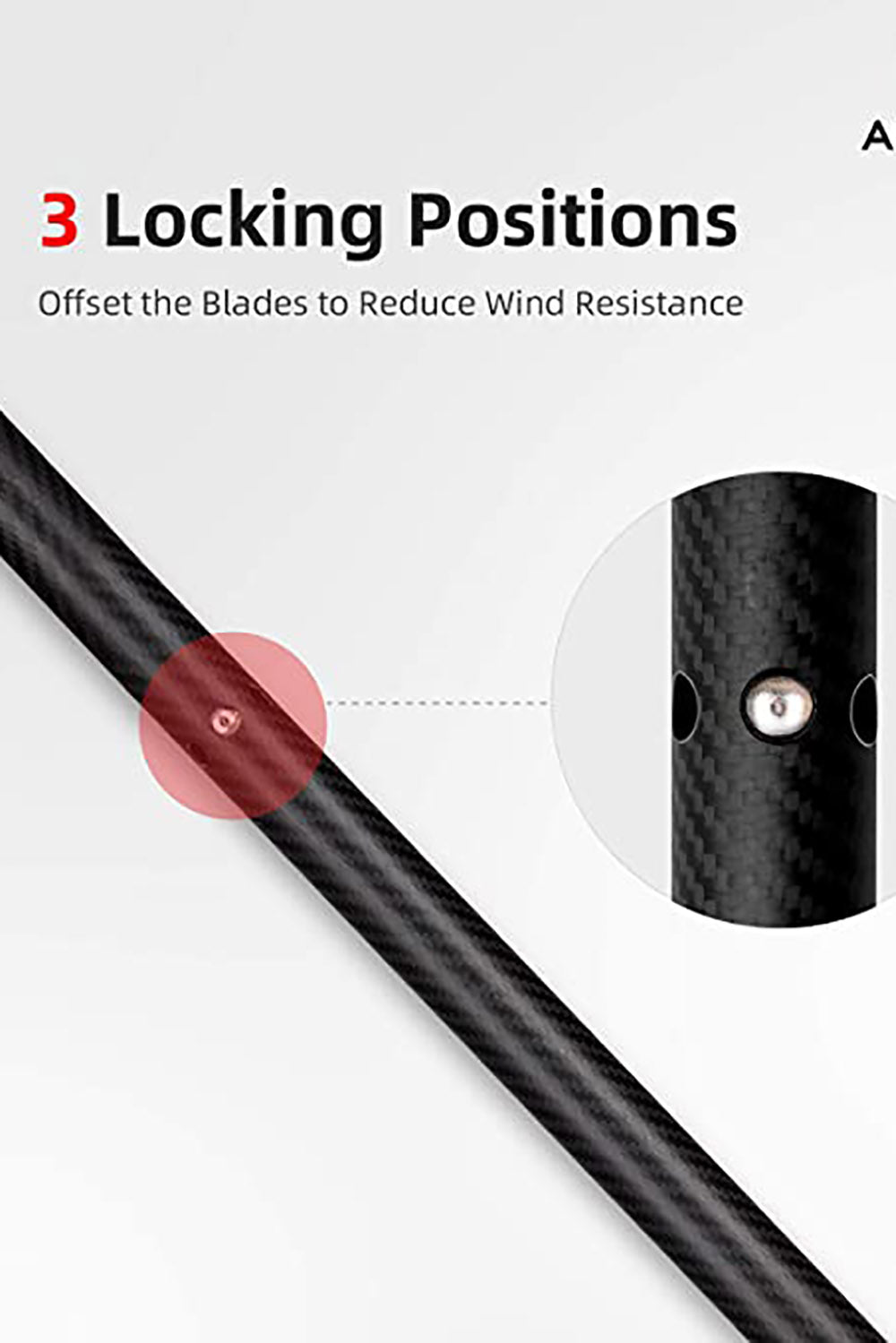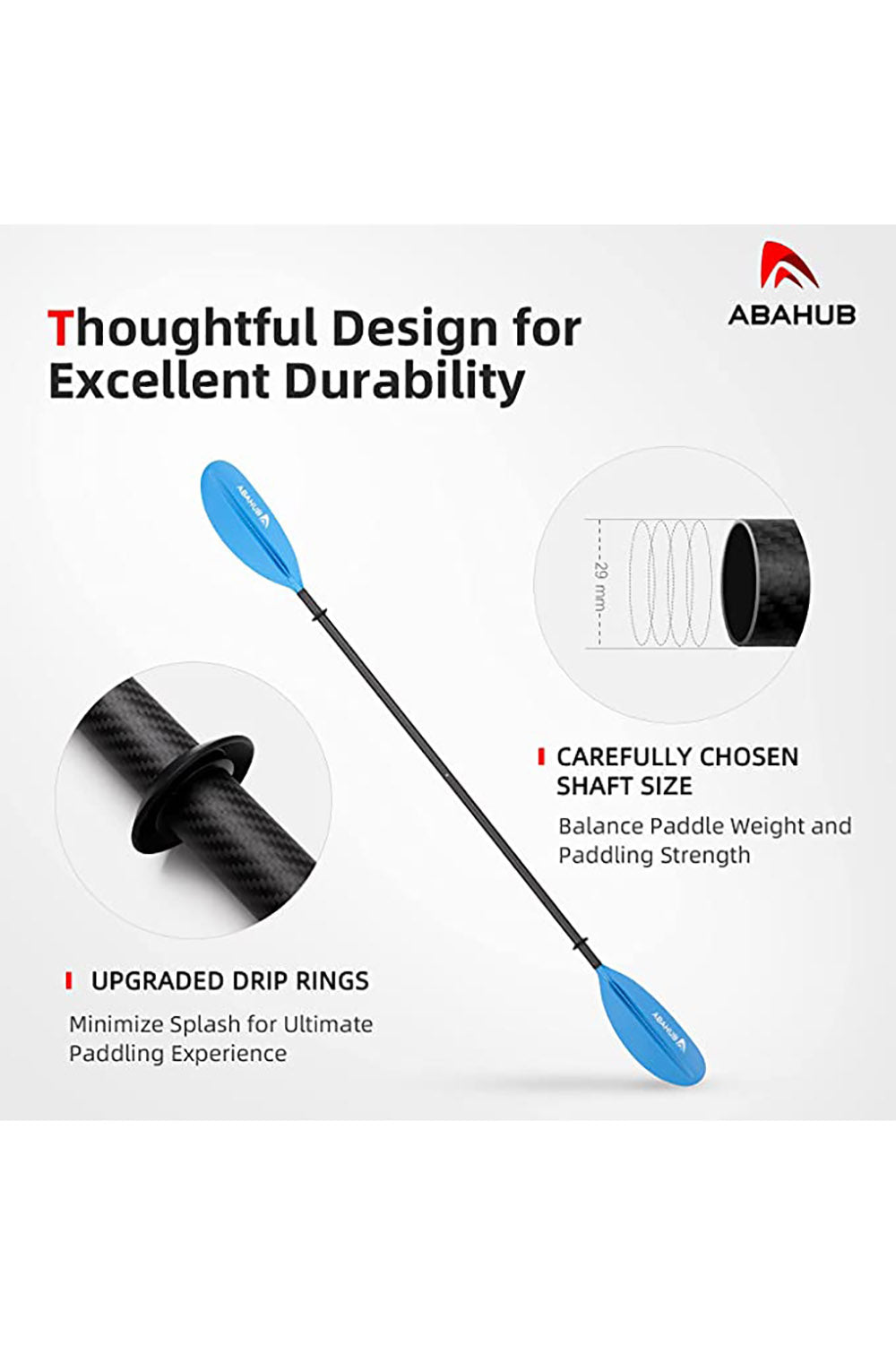 - CARBON DESIGN - LIGHTWEIGHT & DURABLE: Made of premium quality 1.25mm thick, 29mm diameter carbon fiber composite shaft, and fiberglass-reinforced polypropylene blades, this kayak paddle is impact and erosion resistant, thus for great durability. It weighs only 33 oz and is perfect for beginner and intermediate kayakers.
